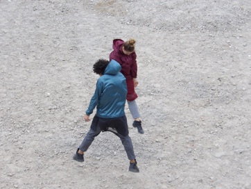 The dance performance on the building plot in Graf-Schack-Alle 10 explored, as an enhancing gesture of the sculpture garden, possible spaces, negotiates the context of the real estate area and sets the body into relation with contemporary architecture.