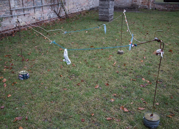 Steel, blocking tape, concrete, aluminum, sticker, cord, soil
